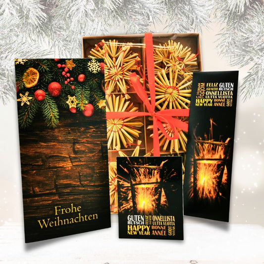 24er-Set Traditionelle Strohsterne mit Wunderkerzen und Karte
