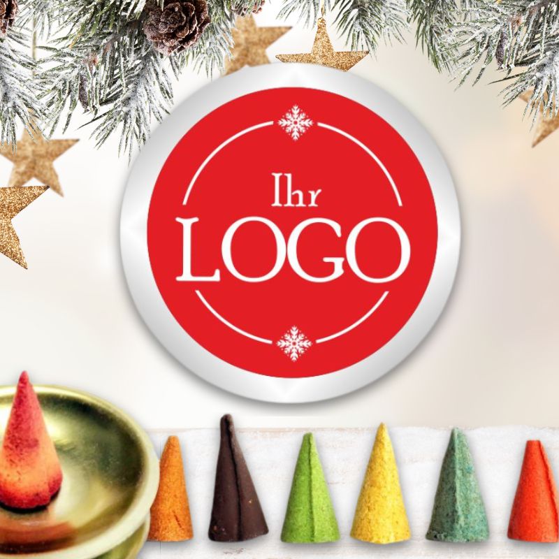 Natürlich können Sie auch Ihr eigenes Weihnachtslayout auf den kleinen Weihnachtsdosen mit Weihnachtsdüften anbringen lassen.