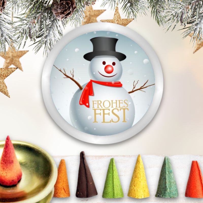 6er-Set Räucherkerzen in Dose mit Glimmschale - Motiv: Schneemann