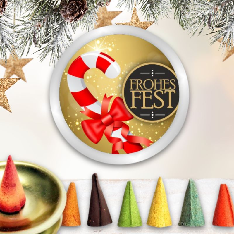 6er-Set Räucherkerzen in Dose mit Glimmschale - Motiv: Zuckerstange