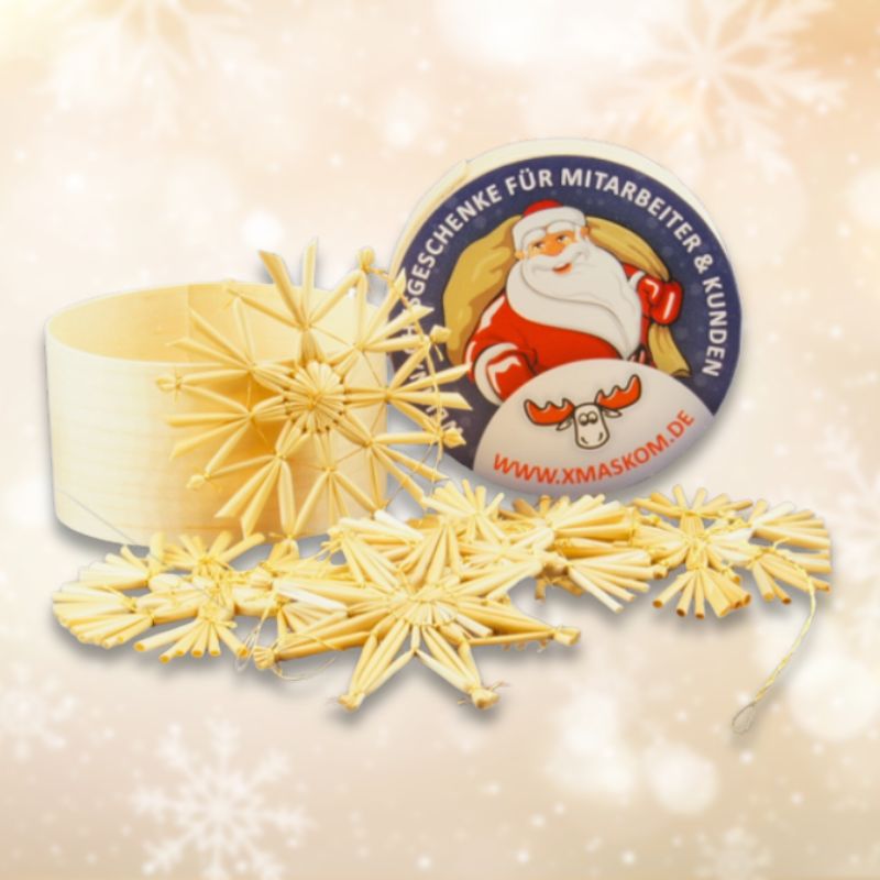 Strohsterne eignen sich auch hervorragend als kleine weihnachtliche Beileger in Ihrer Weihnachtspost für die Kundinnen und Kunden, die Geschäftspartner und die Mitarbeitenden. Weihnachtliche Dekoration mag einfach fast jede und jeder. Der tolle Christbaum-Schmuck ist ein willkommenes Give-Away - auch zum Advent oder zum Nikolaustag. Sie machen aber auch als kleines Deko-Präsent kurz vor Weihnachten etwas her.
