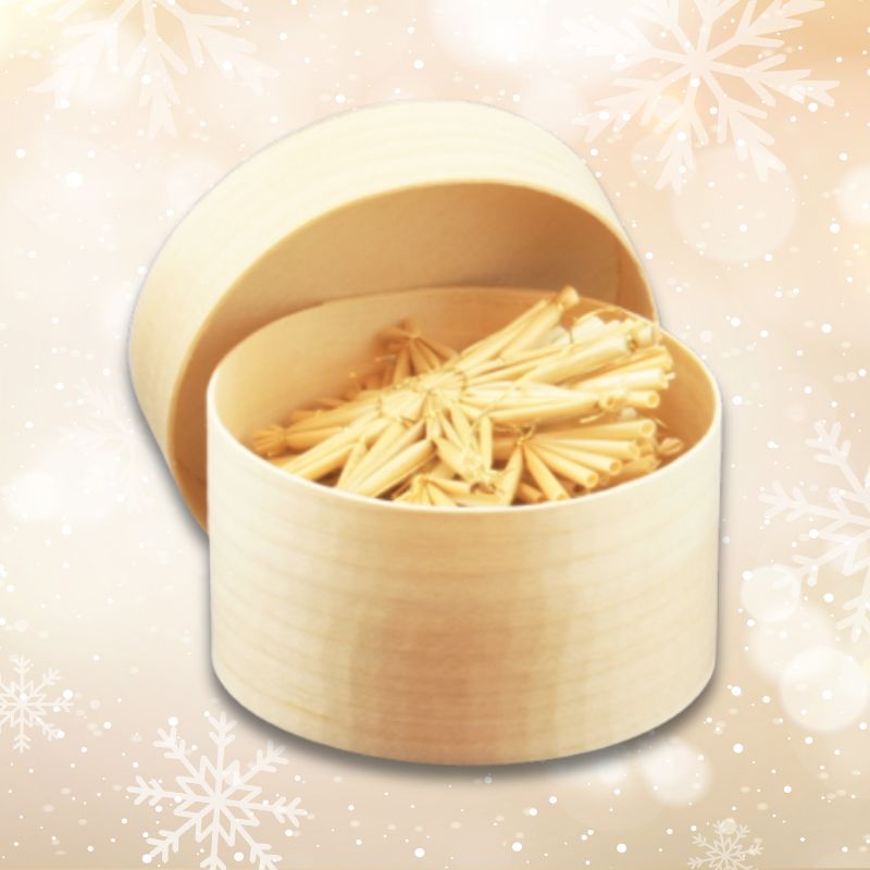 6 Strohsterne, gemischt, Lieferung in einer Holzdose, perfekt als Christbaumschmuck