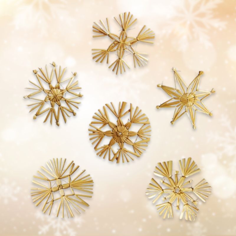 Mit unserer großen Strohsterne-Mischung kaufen Sie sechs verschiedene Strohstern-Motive als Set. Dekoration für das Büro oder den Christbaum in der Kantine, das Wohnzimmer zu Hause oder den Weihnachtsbaum im Foyer - ganz ohne Basteln wird's weihnachtlich schön!