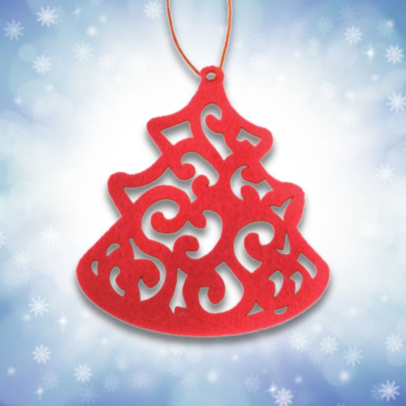 Diese in einem klassischen Rot gehaltenen Weihnachtsbaum-Anhänger sind ein eleganter Christbaumschmuck in der Form eines vollen, fröhlichen Weihnachtsbaumes. Das Motiv ist filigran ausgearbeitet, hier ist nicht nur eine äußere Stanzung durchgeführt worden. Sie können diesen Christbaumschmuck auch in anderen Farben und Formen für sich produziert lassen.