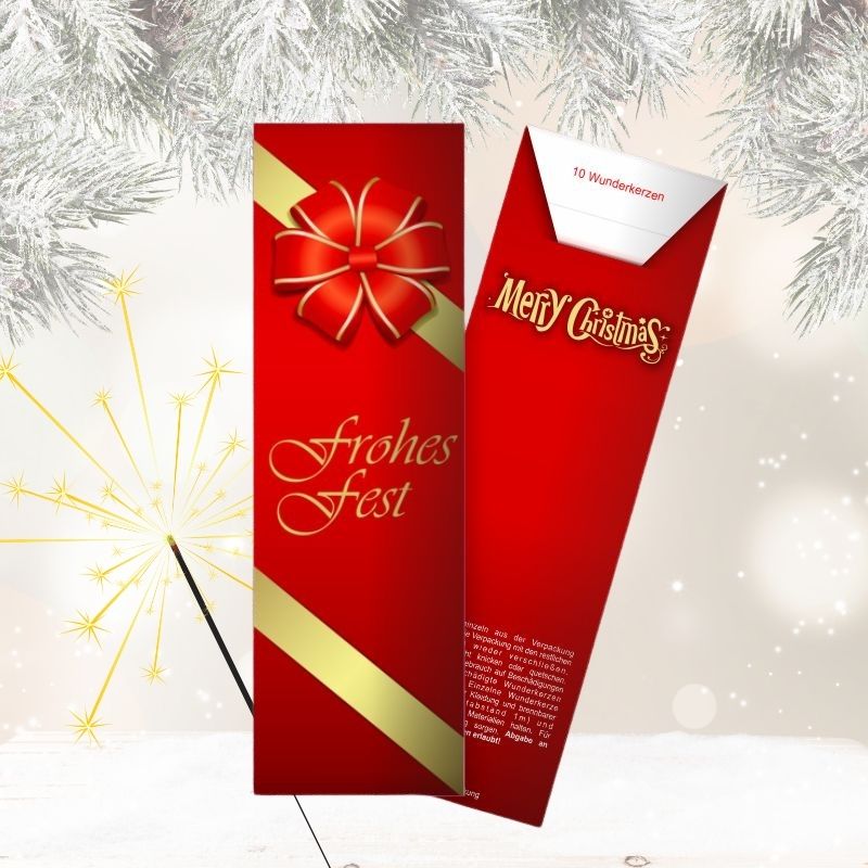 Alle unsere weihnachtlichen Wunderkerzen-Sets eignen sich perfekt als Kundengeschenk zu Weihnachten, als Geschenke- und Paketbeileger und für Weihnachtsfeiern als Tischgeschenk und Party-Gag.